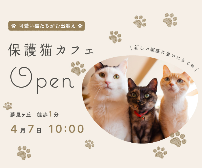 肉球のあしらいや、タイトルである「Open」には、猫の尻尾を連想させるような先のくるんと丸まったフォントを使用し、猫の可愛らしさを演出。配色は、暖色をベースに淡くコントラスト差を抑えた優しい配色にして、優しく温かい雰囲気を演出しました。